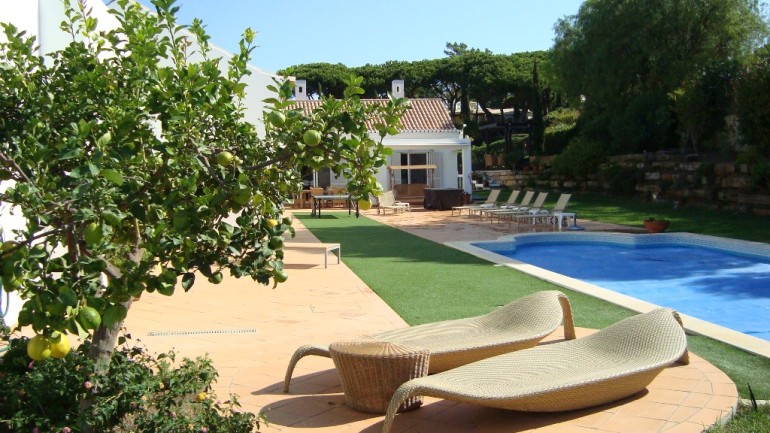 It’s located walking distance from the praça with its restaurants and shops, beach and golf club which makes this an ideal family villa. All rooms are on ground floor level and overlooking the pool and garden. The heated pool and Jacuzzi raised terrace complement the Property.
