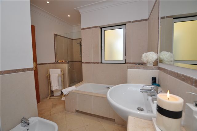 Fantastisch op het zuiden 3 rijtjeshuis staat in het rustige en pittoreske resort van gated Fazenda Santiago, biedt privacy en hoogwaardig wonen. De hal leidt naar een ruime woonkamer met vloer tot het plafond glazen schuifdeuren, die overstroming het interieur met zonlicht en bieden een prachtig uitzicht over de lange aangelegde tuin en het zwembad. Een suite logeerkamer is ook te vinden op deze verdieping. Windows-functie zorgt voor een heldere en lichte sfeer in het trappenhuis en de landing op de eerste verdieping. De master bedroom suite is gelegen op deze verdieping. Royaal in omvang, de kamer heeft prachtige verre zee en het platteland uitzicht vanaf een eigen balkon. Een suite derde slaapkamer bevindt zich ook op deze verdieping. Een 4e slaapkamer wordt momenteel gebruikt als een informele tv-lounge op de grote benedenverdieping, zo is veel bergruimte. Buiten, de familie zwembad is omgeven door zonneterrassen, inclusief ruimte om buiten te dineren. De grote mooie tuin is voorzien van volwassen palmen en weelderige, gemanicuurde gazons