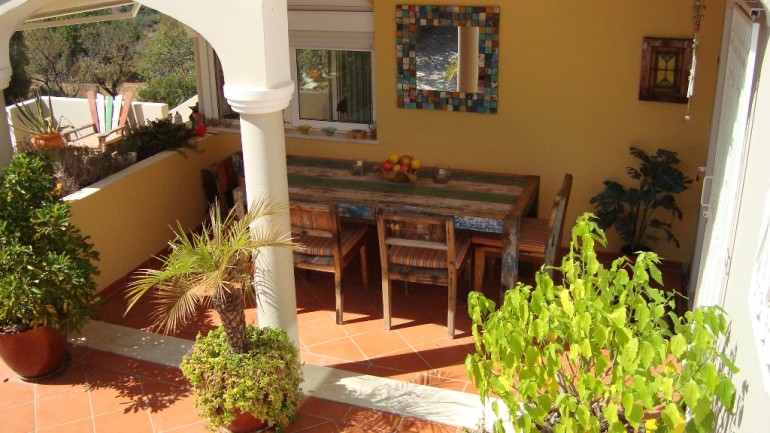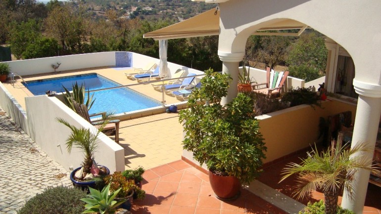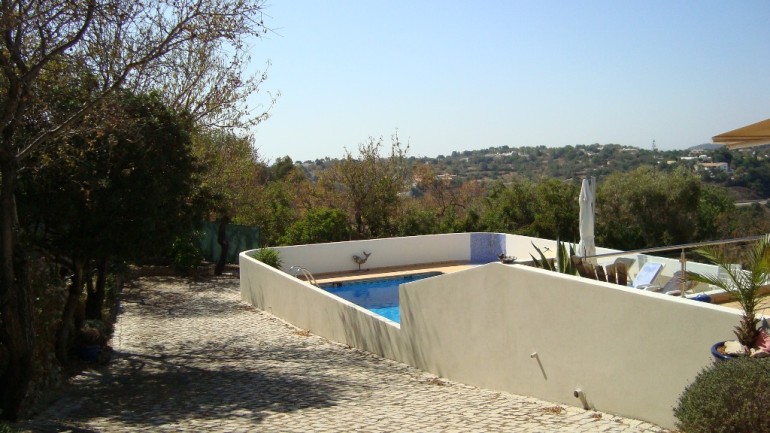 esta linda 4 propriedade quartos está localizado em um terreno elevado perto Goldra / Loulé, mas a apenas alguns minutos do centro de Almancil, com belas sul enfrentando vista para o vale para o mar e para o leste que olham para Faro e as ilhas além.